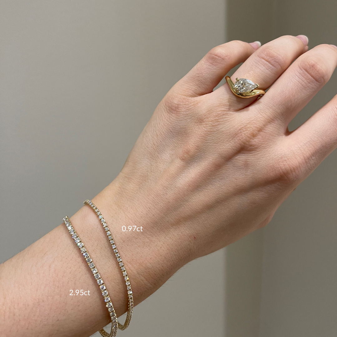 This Classic Tennis Bracelet features 70 round lab-grown diamonds (Colour: E, Clarity: VS) with an approximate total carat weight of 2.95ct. This bracelet is 18cm long.