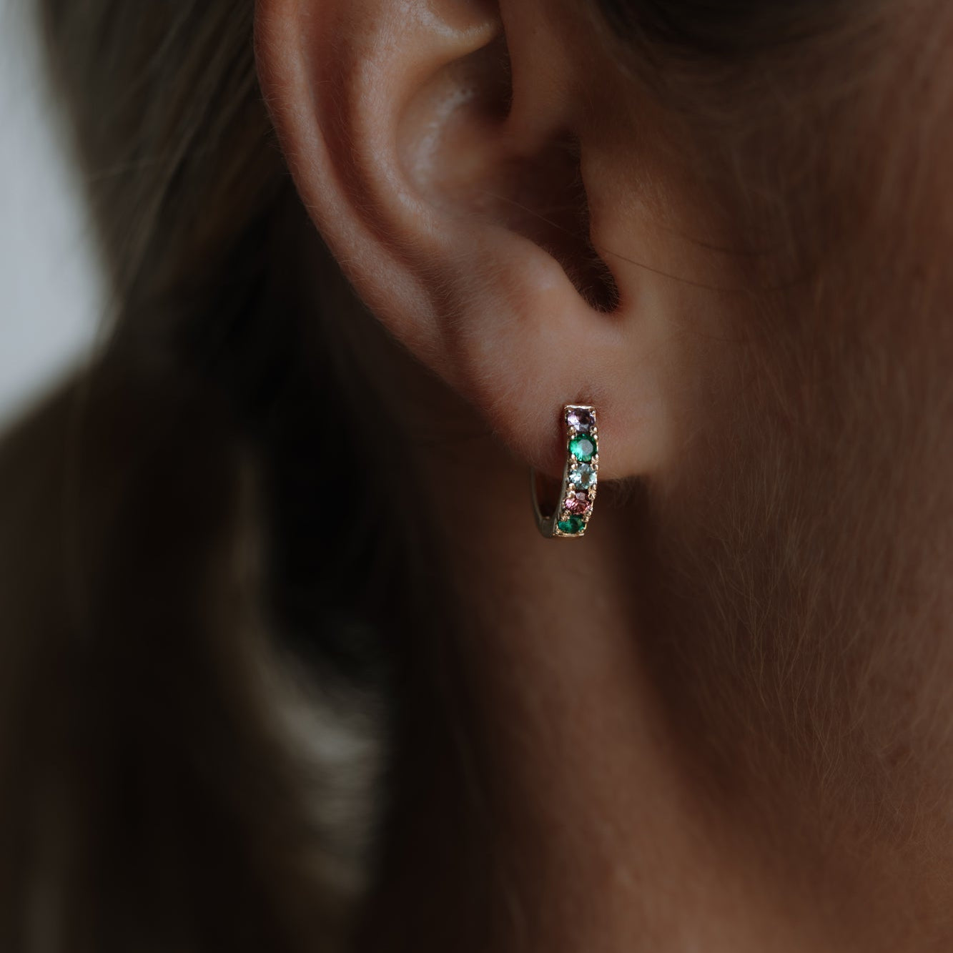 Colourful gemstone huggie