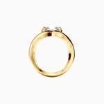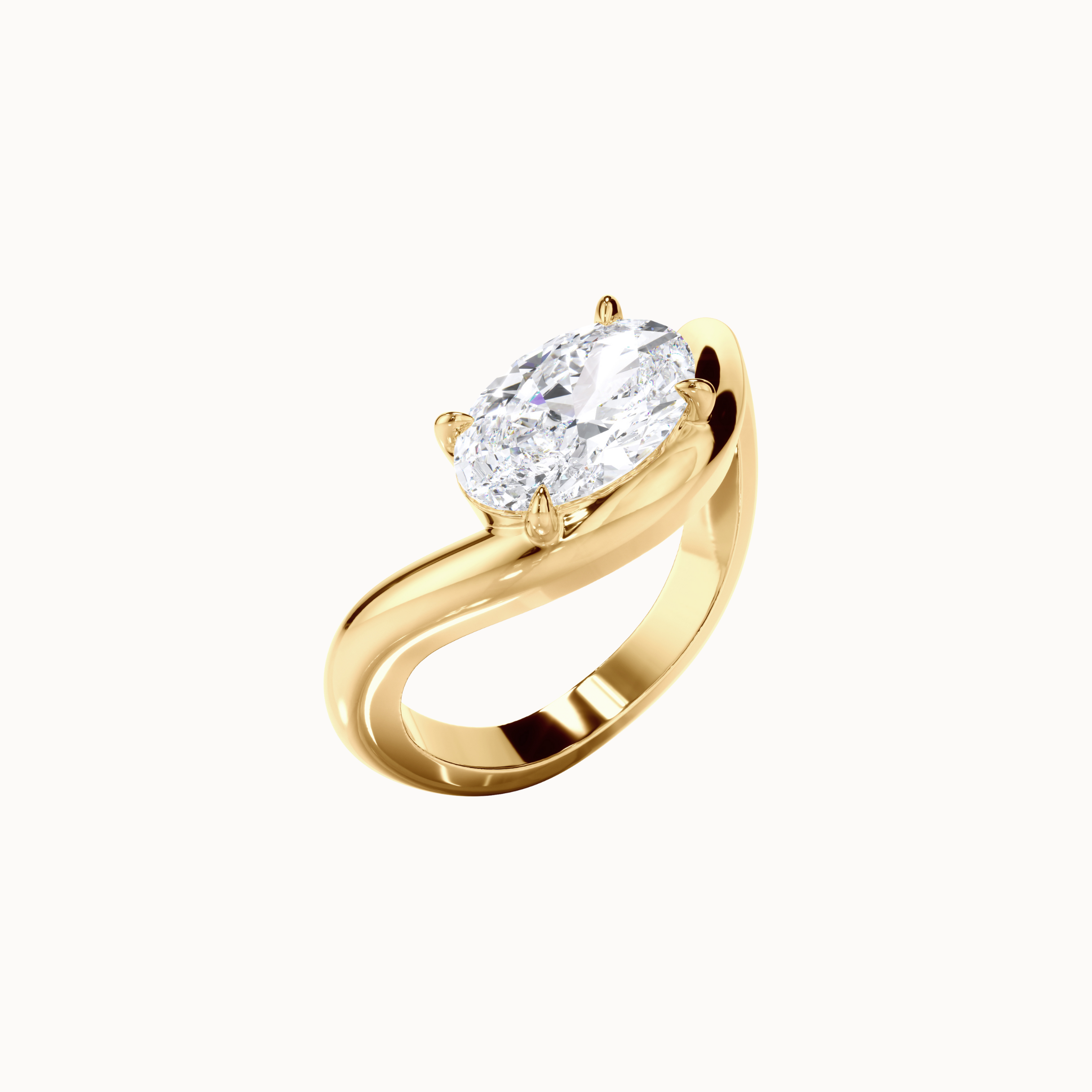 The Allegra design features an east-west oval solitaire set into a soft curved band. Classic in form, but with a modern edge.