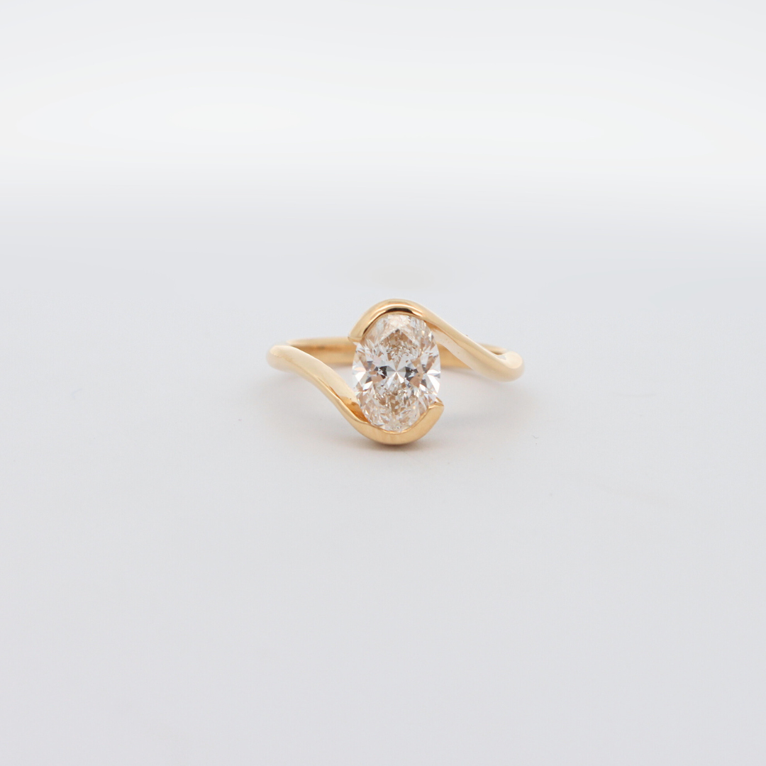 A modern alternative to the timeless solitaire silhouette, the Isla Ring feature a semi-bezel setting that wraps around the top and bottom of the diamond.