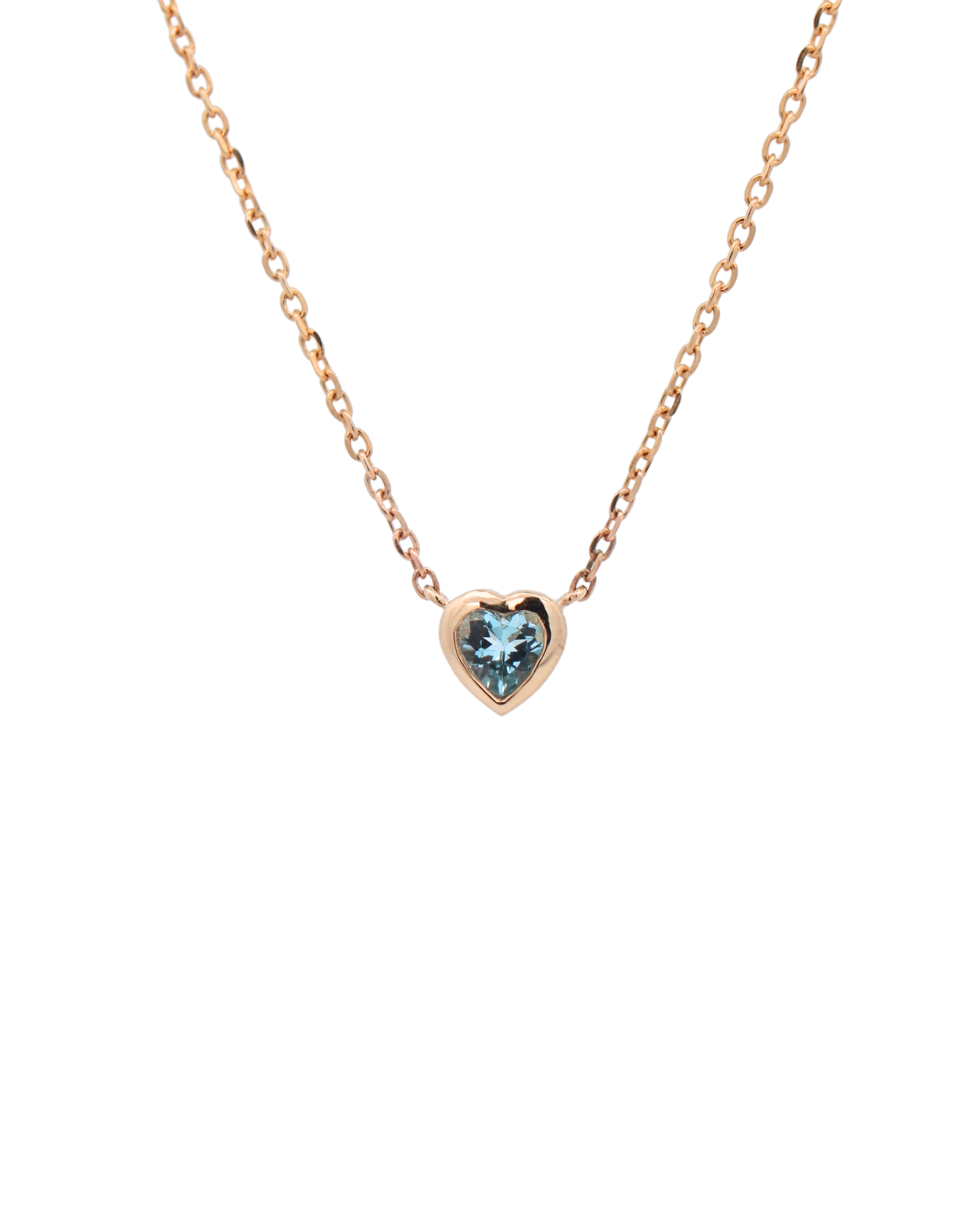5mm Aquamarine Heart Necklace - 9ct Yellow Gold