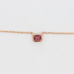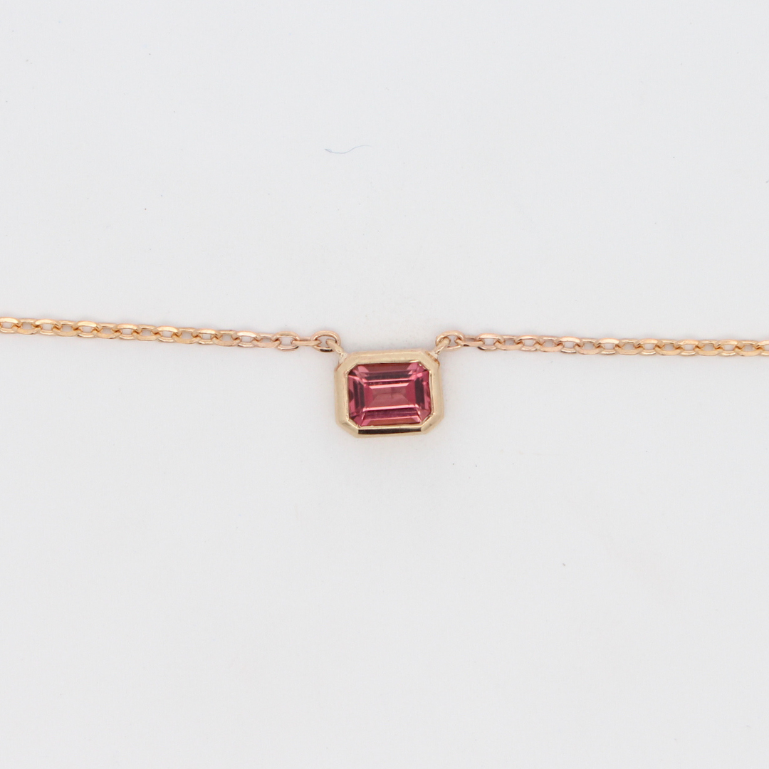 A vibrant 0.43ct emerald cut Pink Tourmaline takes the spotlight in this Charlie Necklace.