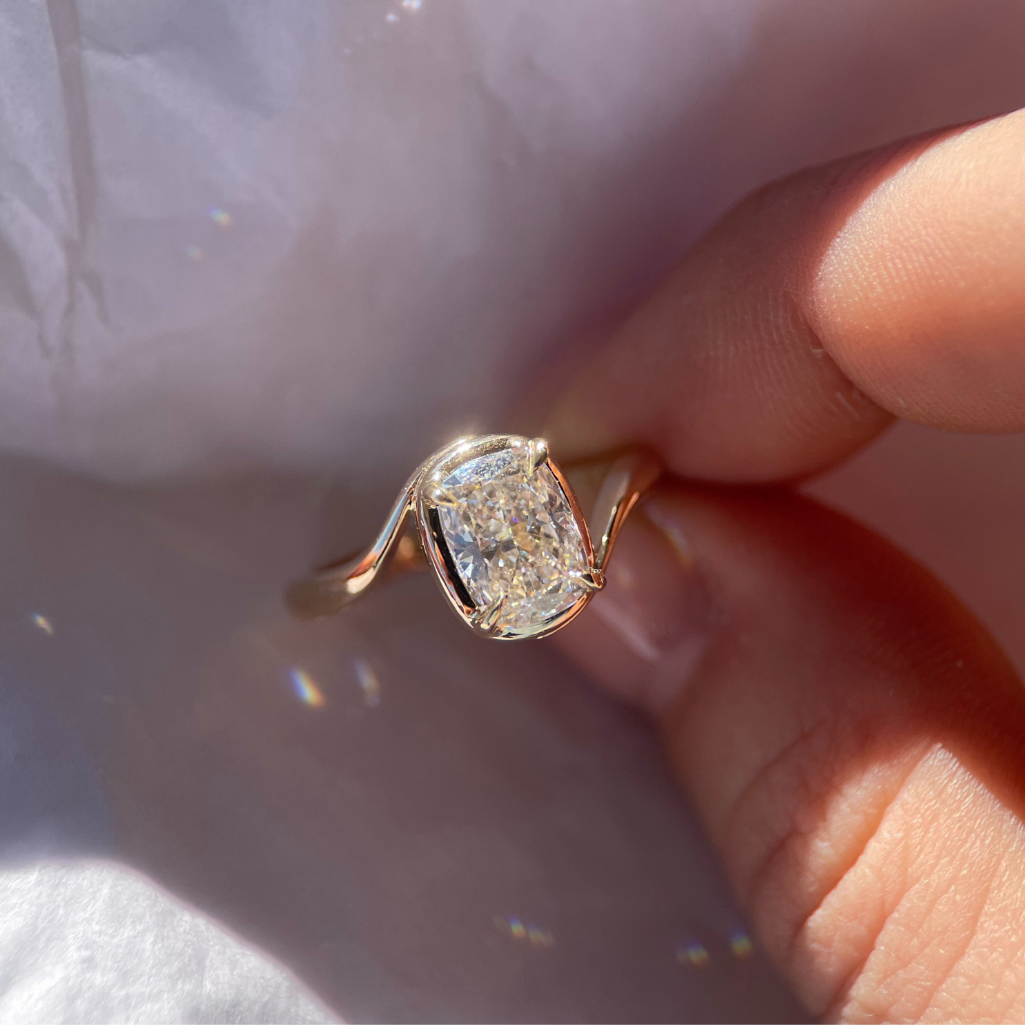 An engagement ring that flows with intention, unconstrained by traditional rules of engagement ring design.