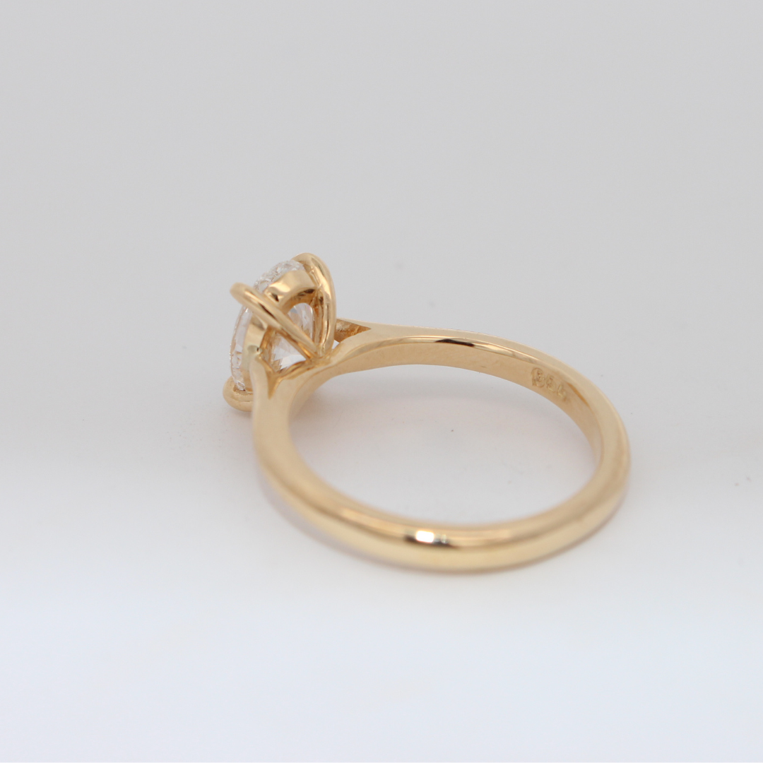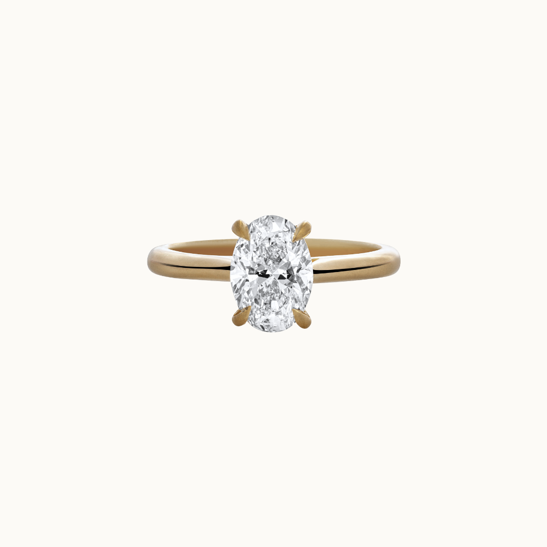 A forever classic, meet our Selene Ring - featuring a stunning 1.52ct D VS1 lab-grown oval diamond in a four-claw setting and straight polished band.
