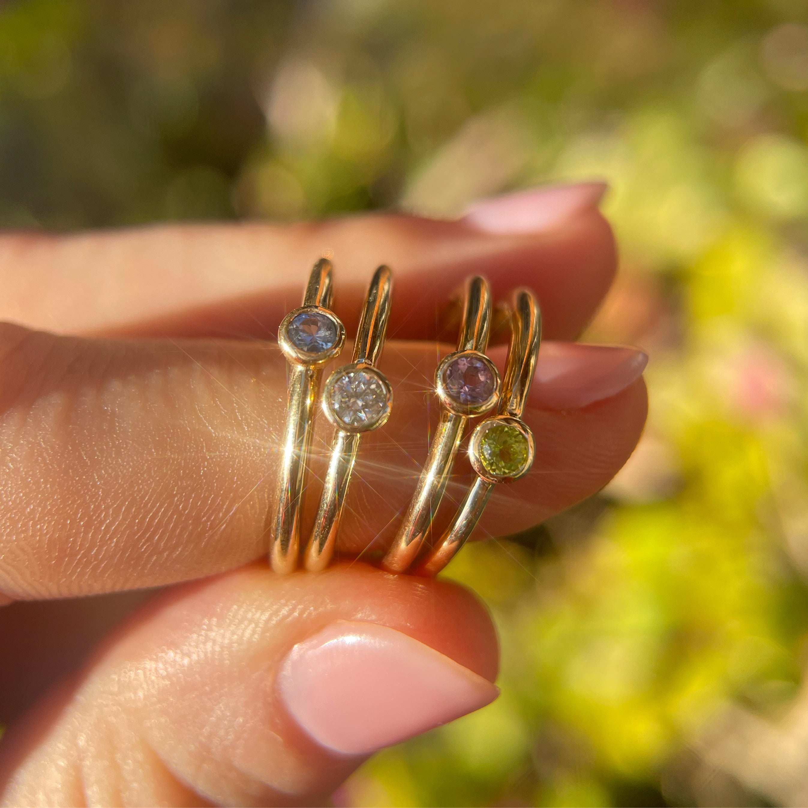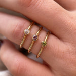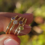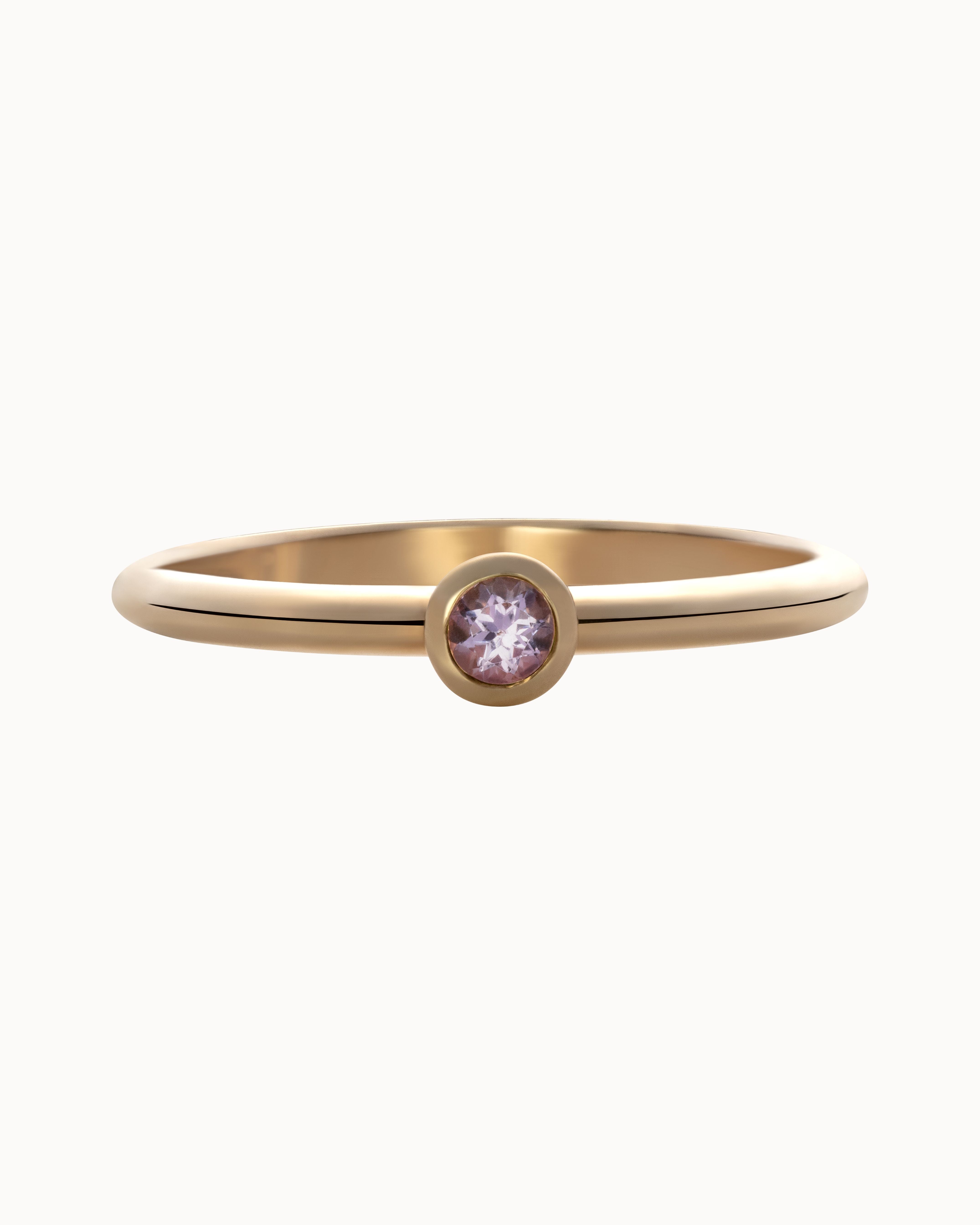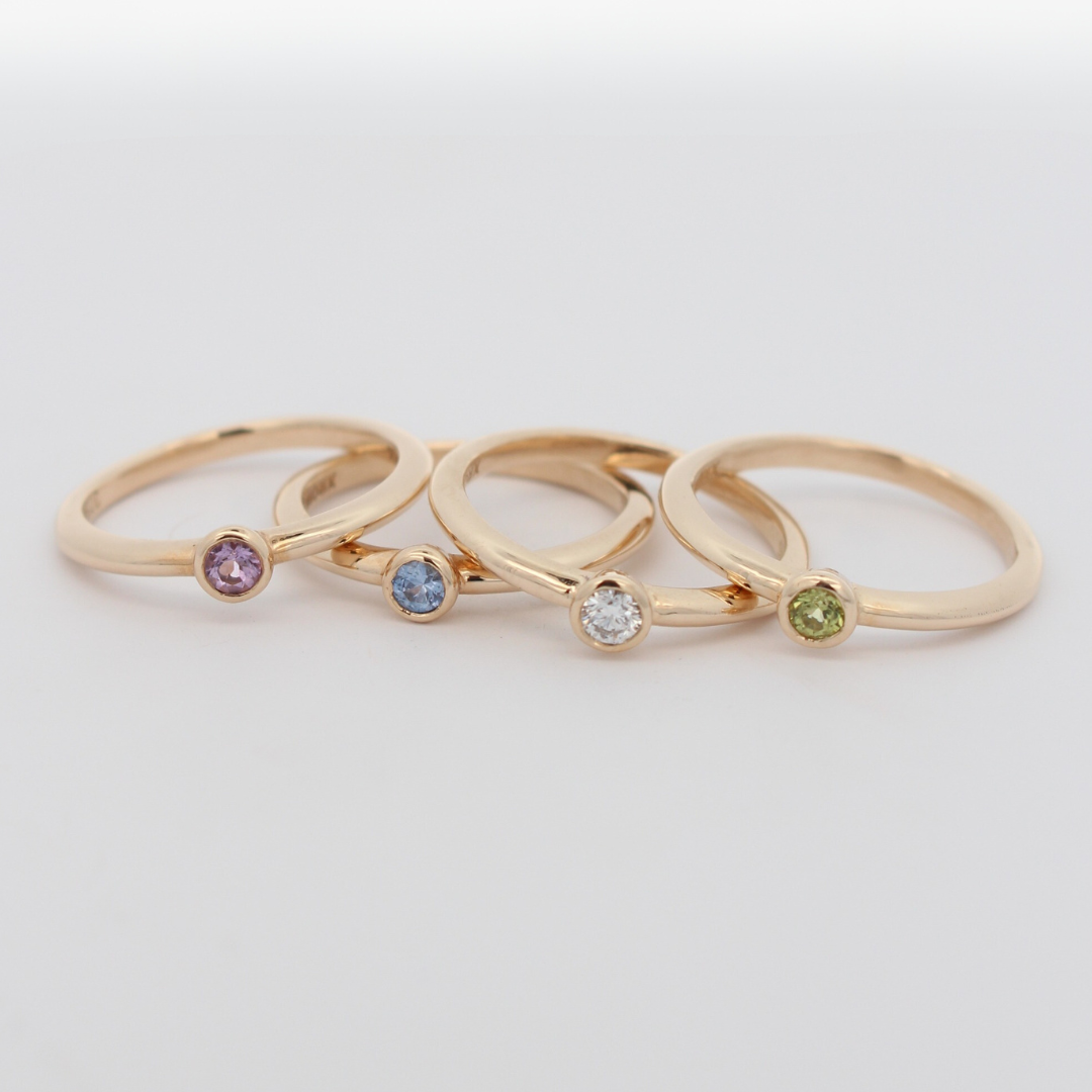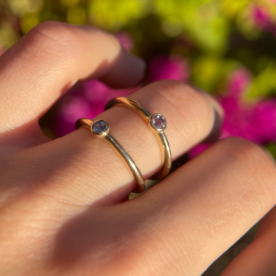 A touch of colour to brighten your day, our Iris Ring feature a gorgeous 2mm round coloured gemstone bezel-set in 9ct yellow gold.
