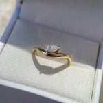 Keeping it dainty, we've chosen an approximate 0.50ct diamond to nestle into a sleek curved band.