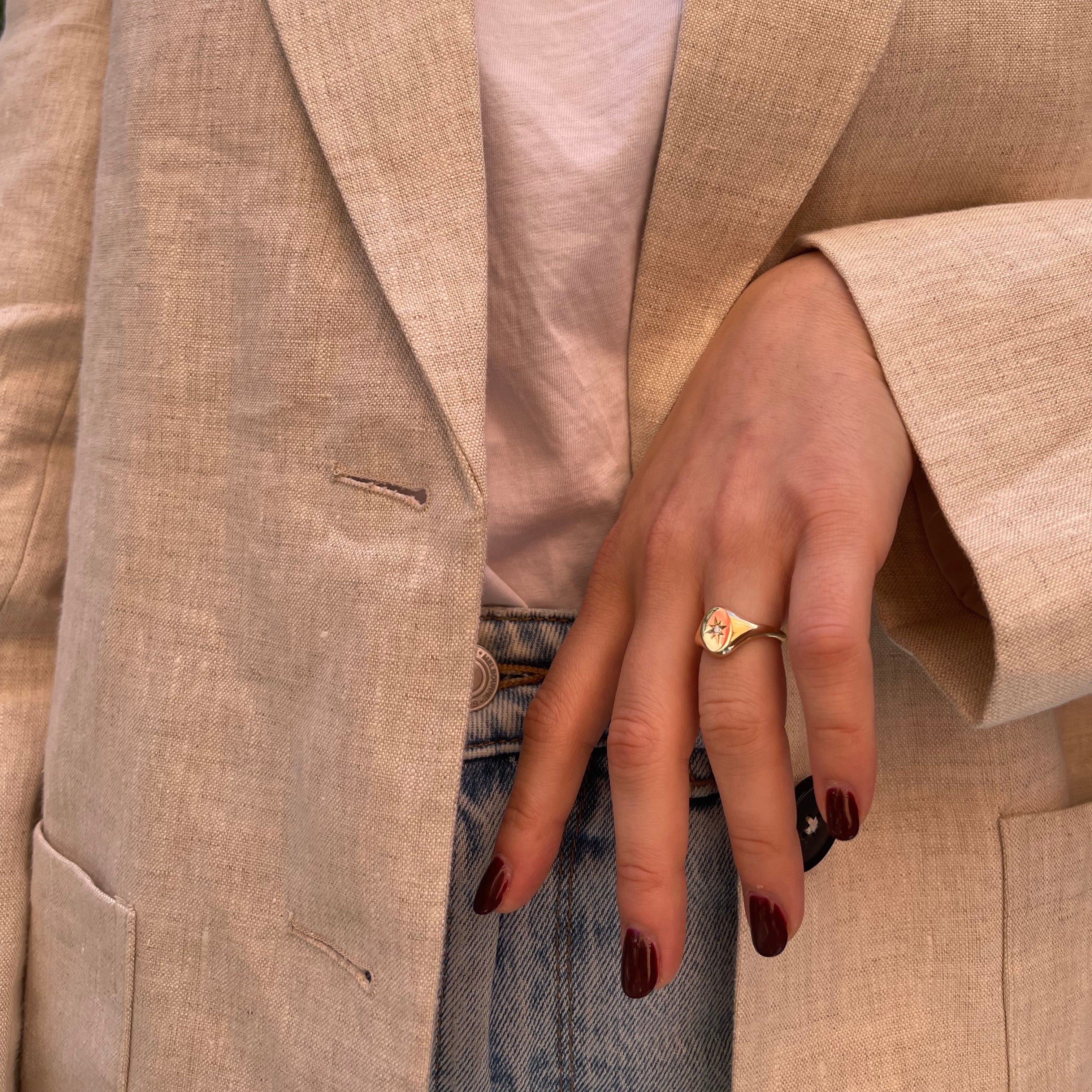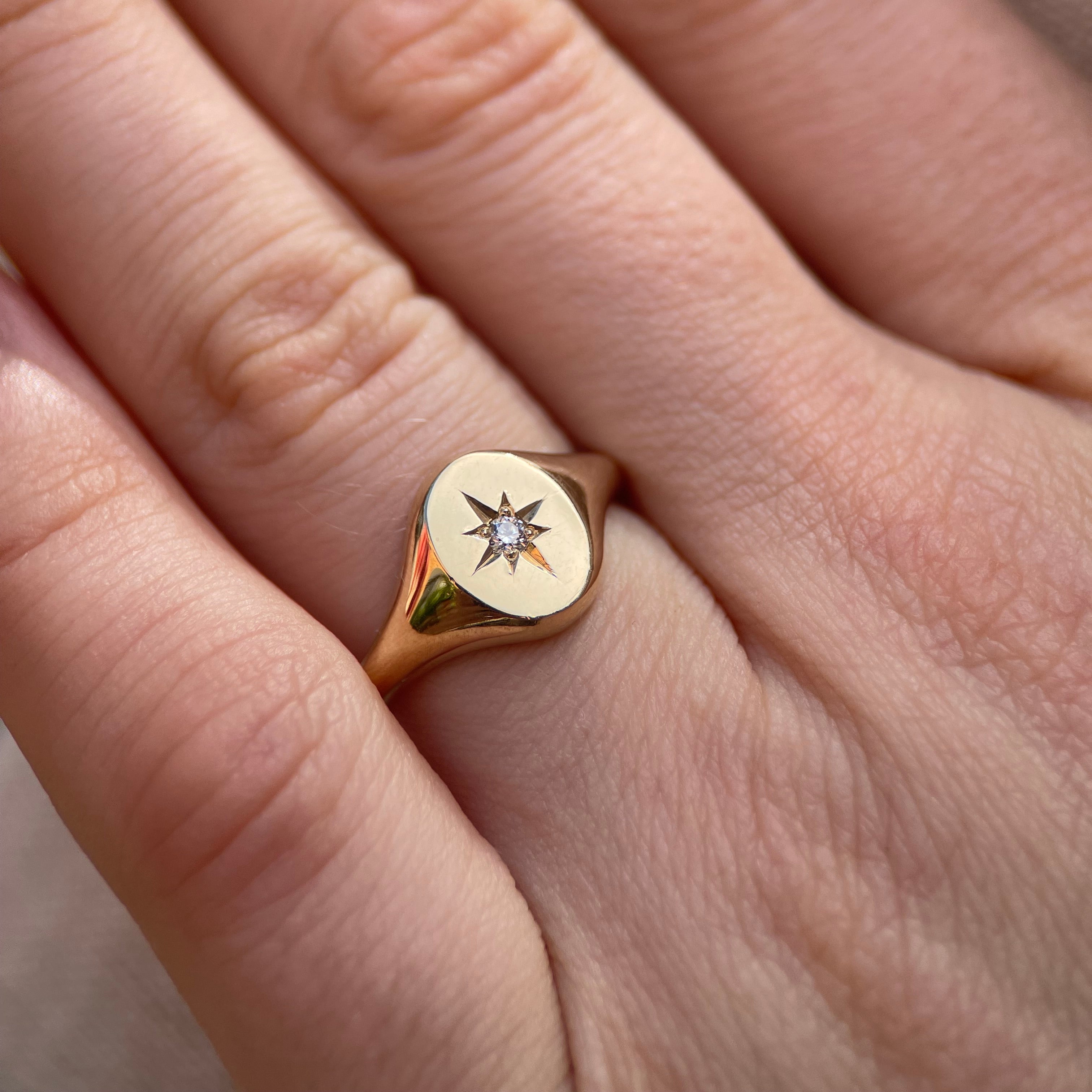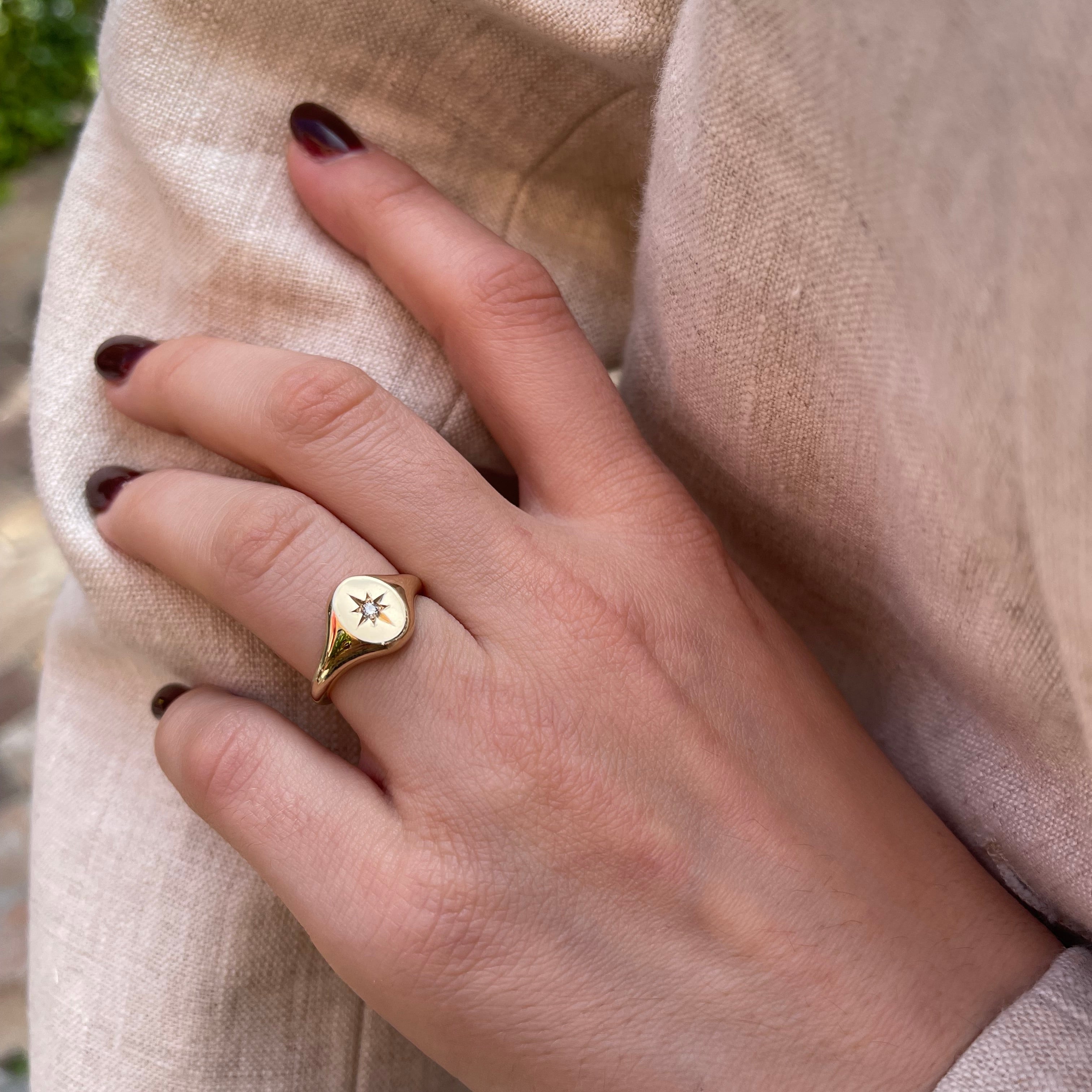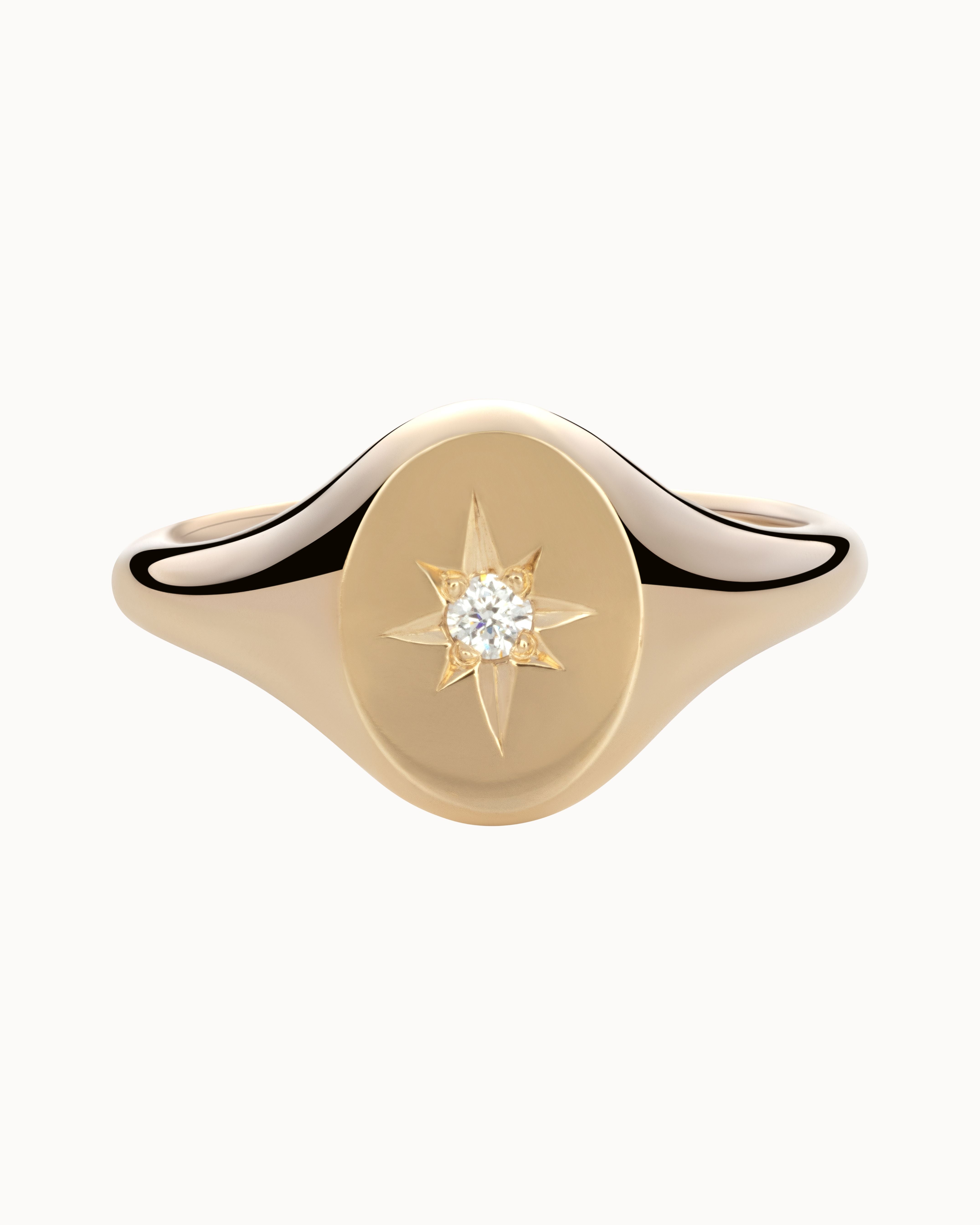 The effortlessly chic gold oval signet, accentuated by a star-set diamond.