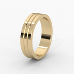The Nico Wedder is a modern design handcrafted from solid gold. The band is 5mm wide, with a three-band illusion.
